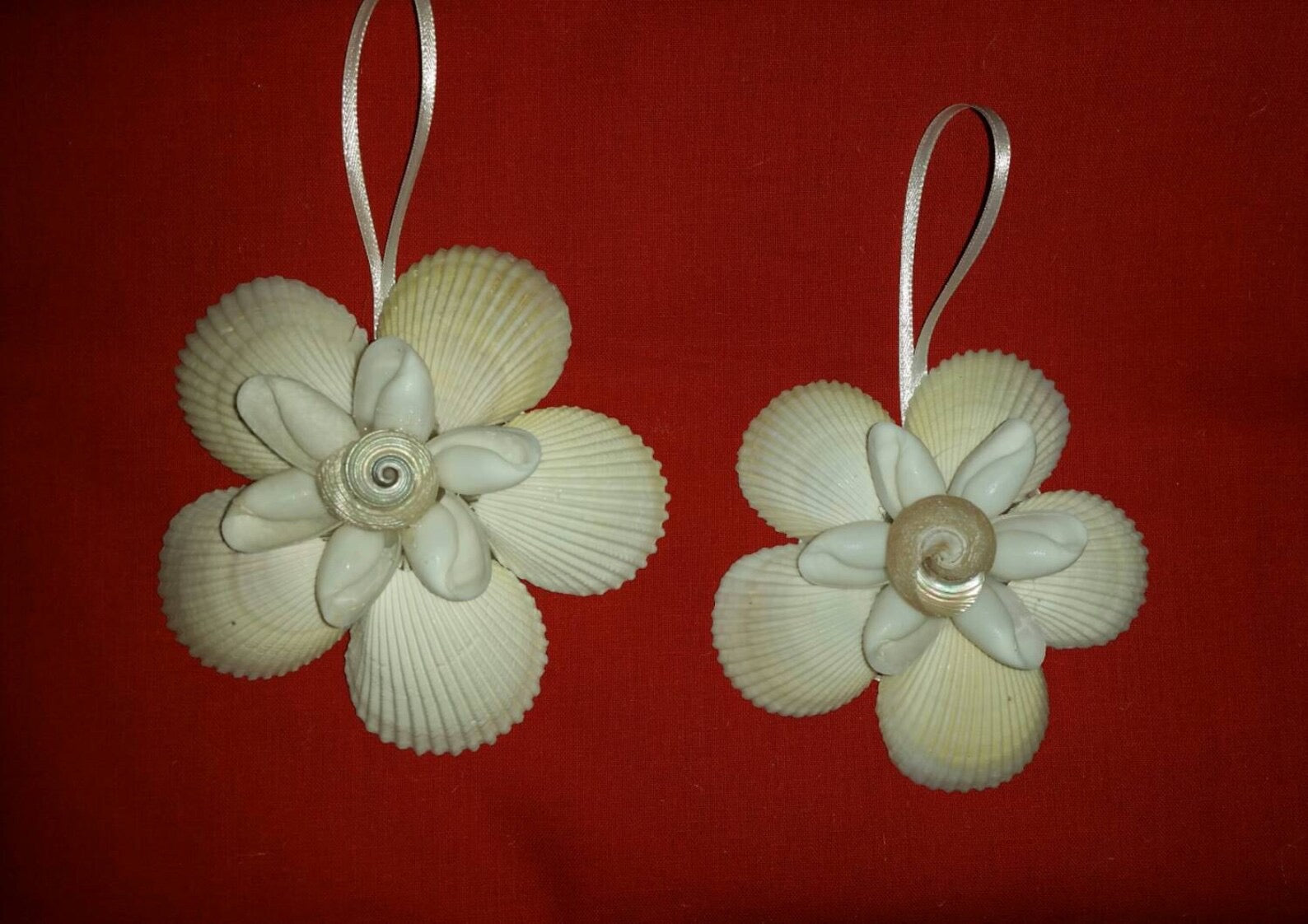 This listing is for one Seashell Flower Christmas ornament. These ornaments are approximately 4" wide.